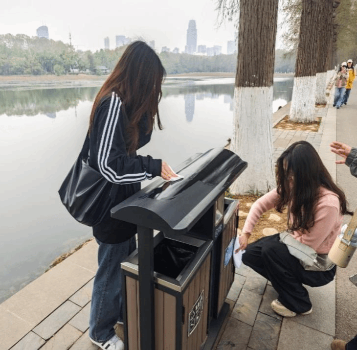 沿着东湖西北岸蜿蜒的绿道,16名学子缓步前行。每一次俯身捡拾暗藏草隙的烟头,既是对城市微尘的清理,更是为文明火种的守护;每块拭布拂过铜像肌理,既让历史容颜重现光彩,也让责任意识镌刻心间。环保日志清晰记录着:清理散落烟头8枚,回收PET材质饮料瓶3个,并对沿途2处公共垃圾桶进行了深度清洁。这些看似微小的数字,实则是生态长江岸线保护行动中跳动的文明脉搏。
