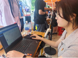 在南望山校区迎新现场,党员先锋岗的红色帐篷成为一道亮丽的风景线。服务点布局合理、功能齐全,配备有电脑、矿泉水和迎新资料等必需品,为新生和家长提供及时便捷的服务。“党员先锋岗”的标识鲜明醒目,精心设计的欢迎展板烘托出热情而专业的迎新氛围,充分展现了3044am永利集团3044noc的独特风采。服务点设置的每一处细节,都凝聚着学院党委对迎新工作的周密部署,传递出对2025级新同学的诚挚欢迎与深切关怀。